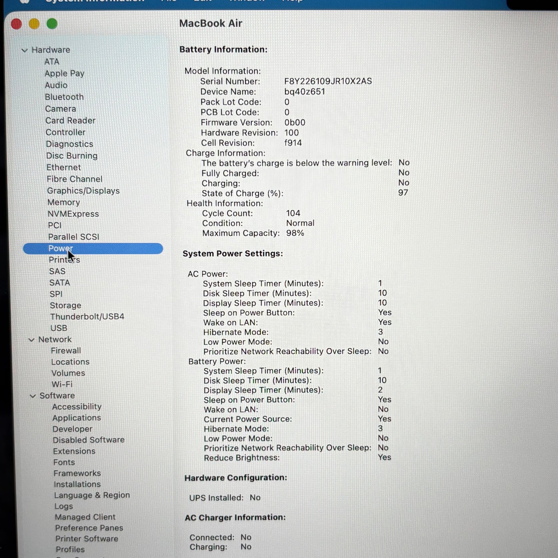 | Model | MacBook Air |