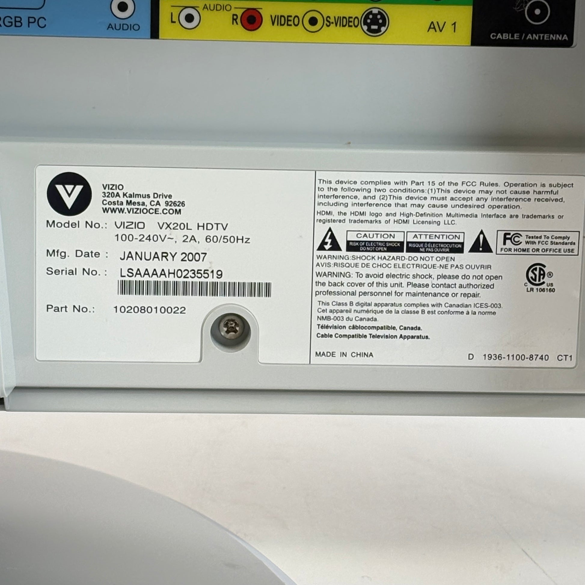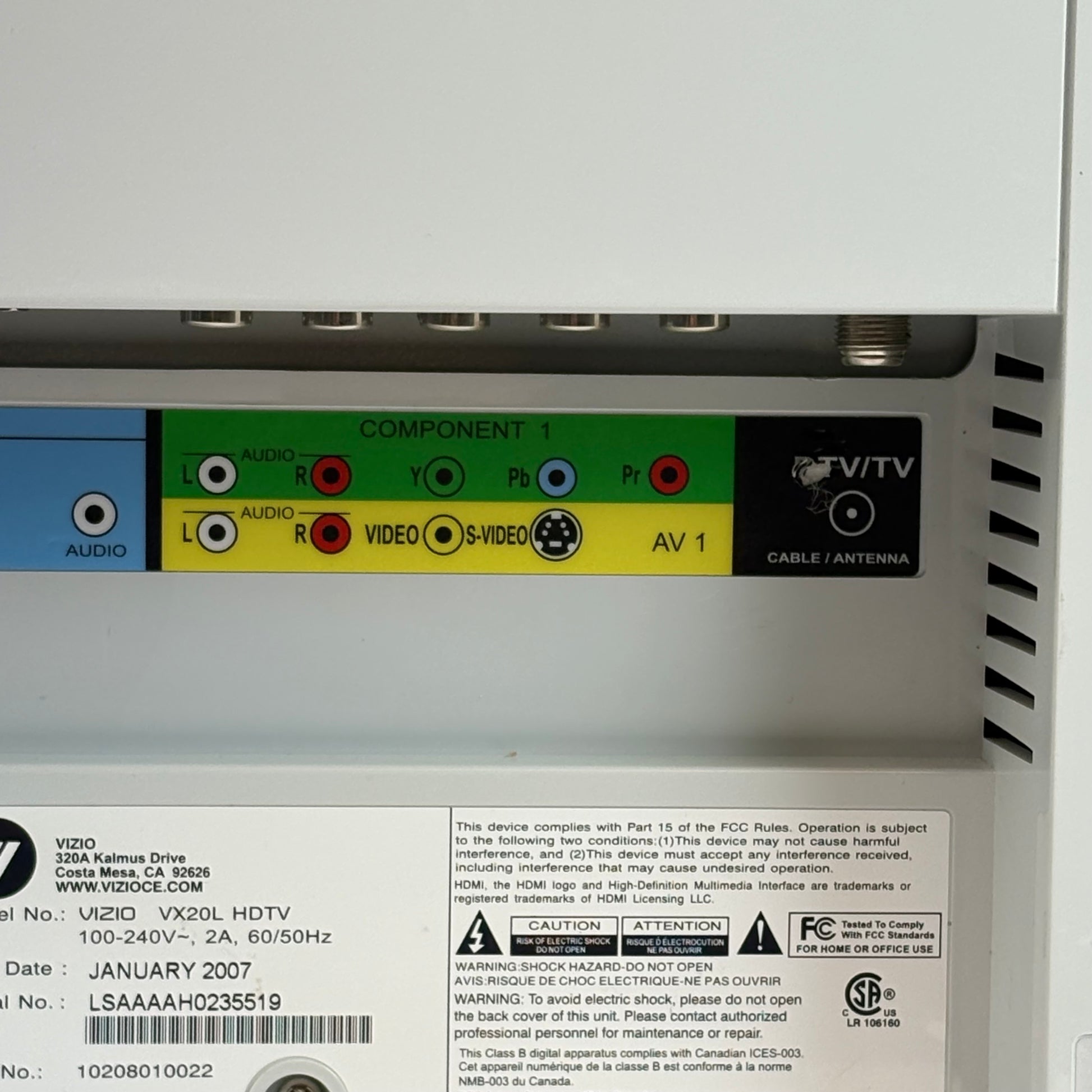 Vizio 20 10208010022 VX20L HDTV LCD 720p Retro Gaming TV 2007